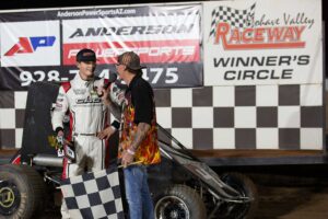 Read MoreBAKERSFIELD, CALIFORNIA (September 9, 2023) – Surprise, Ariz.’s Drake Edwards won his fifth points paying Western Midget Racing race of the 2023 season by striking black gold in the inaugural series race at Bakersfield Speedway on Saturday night. The victory was also Edwards’ third in the last four races. Edwards and Joey Klemish of Cortez,…